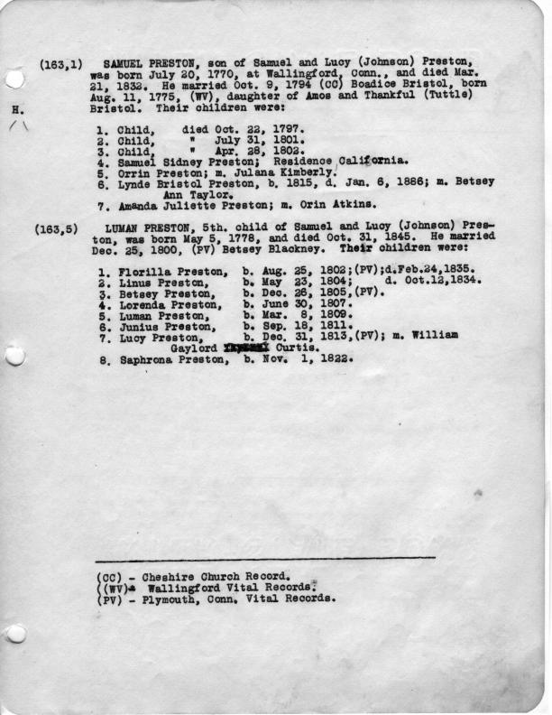 6. Lynde Bristol Preston, b. 1815, d. Jan. 6, 1886; m. Betsey Ann Taylor.