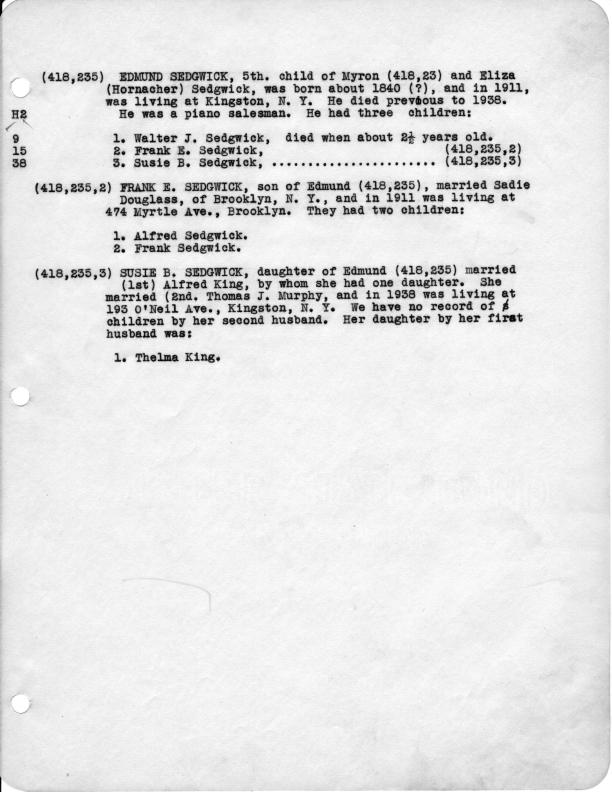 According to the 1880 and 1900 census records, Susie B Sedgwick was born before Frank A Sedgwick, so I have swapped their code numbers in the