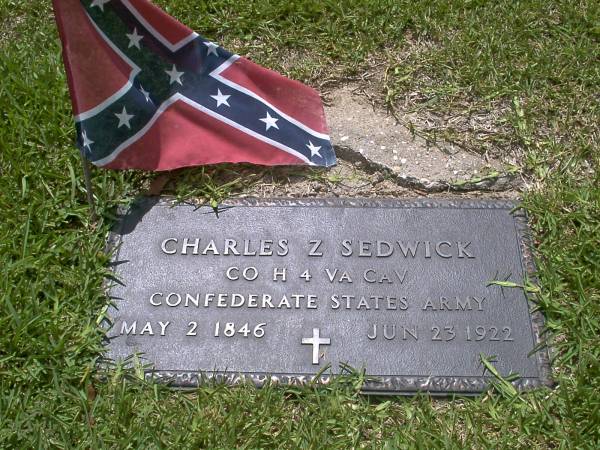 Grave of Charles Zadock Sedwick (1846-1922) Alvin, Brazoria, Texas, Confederate Cemetery map aerial photo The grave is immediately at the northwest quadrant of the northernmost intersection, just inside the cemetery entrance.