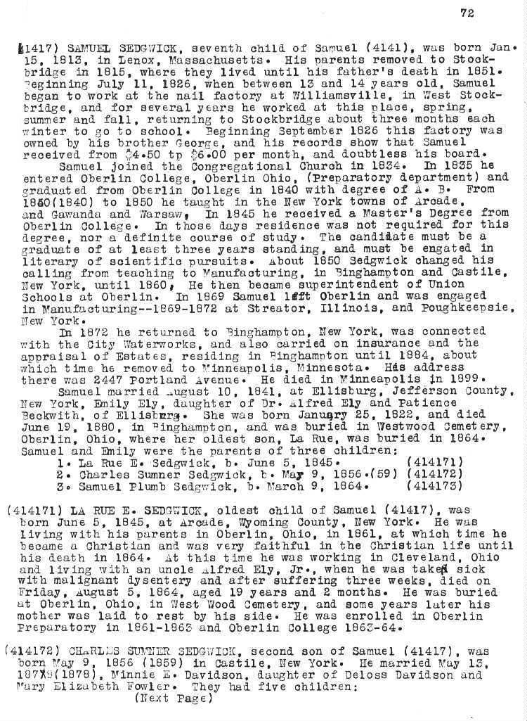 A Genealogy of the Sedgwick Family in America since 1635