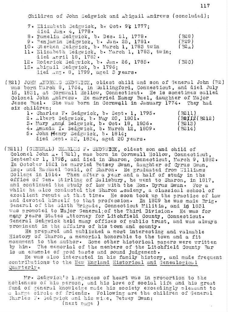 A Genealogy of the Sedgwick Family in America since 1635