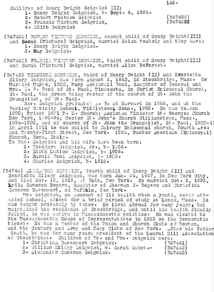A Genealogy of the Sedgwick Family in America since 1635