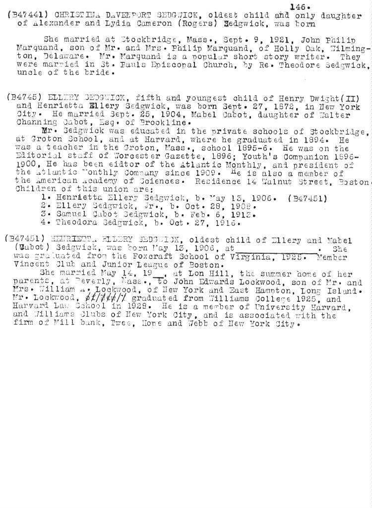 A Genealogy of the Sedgwick Family in America since 1635
