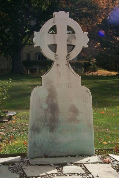 | SEDGWICK | Jane | In memoria Jane Sedgwick Nata in Stockbridge Feb XX MDCCCXX Mortuna in Washington DC FEB XII MDCCCLXXXIX Fide, Fortitudine et Amore |