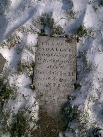 SEDGWICK | Frances Adaline | FRANCES ADALINE Daughter of P & M.D. Sedgwick died Dec. 16, 1841 aged 6 yrs 1 mos 27 d. |