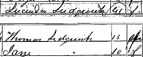 Lucinda Duncan Sedgwick widow of Unknown Barnabas Sedgwick Lucinda is at bottom of page 87a, indexed as "Ludgwick", Thomas is top of page 88. Jane is Ione, but is definitely written Jane. The J matches exactly the J in "John" on the same page. Image from the online 1850 census image collection at GenealogyLibrary.com. ![]() |